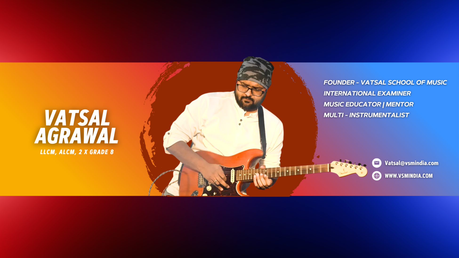 Mr. Vatsal Agrawal is a multi-instrumentalist, music educator, founder of Vatsal School of Music, and International Examiner at RSL Awards (Rockschool). Based in Bhilai, India, he brings 14+ years of experience in music education.